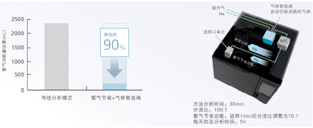 選配“氣體智選閥”,常規(guī)樣品分析時(shí),正常使用氦氣,分析結(jié)束待機(jī)時(shí),可自動(dòng)切換到其他替代氣體 (氮?dú)饣驓錃猓?,盡可能降低氦氣的消耗量,節(jié)省實(shí)驗(yàn)室氣體運(yùn)行成本。該切換控制功能無縫嵌入到LabSolutions GC工作站中,操作簡(jiǎn)單直觀。